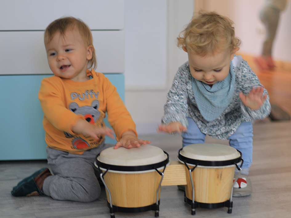 Beim gemeinsamen Musizieren können sich die Kinder jedes Mal ein anderes Instrument auswählen. Konflikte in der Gruppe werden hier als Chance wahrgenommen, um Teilen und Abwechseln zu lernen.